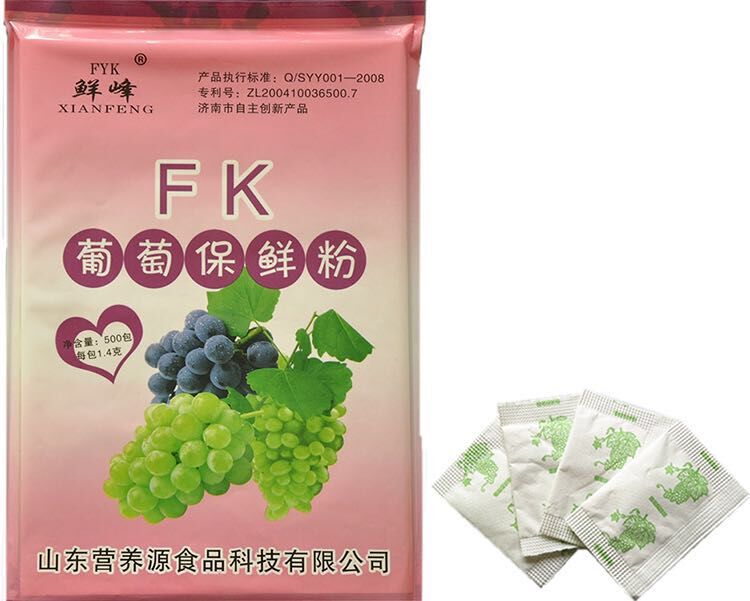 FK葡萄保鮮粉是一種高效安全的葡萄專用保鮮劑,該產品能緩慢持久地釋放二氧化硫,釋放期可達2-3個月。可在冷庫短期儲存和長途運輸中使用,以達到短期保鮮葡萄的目的。